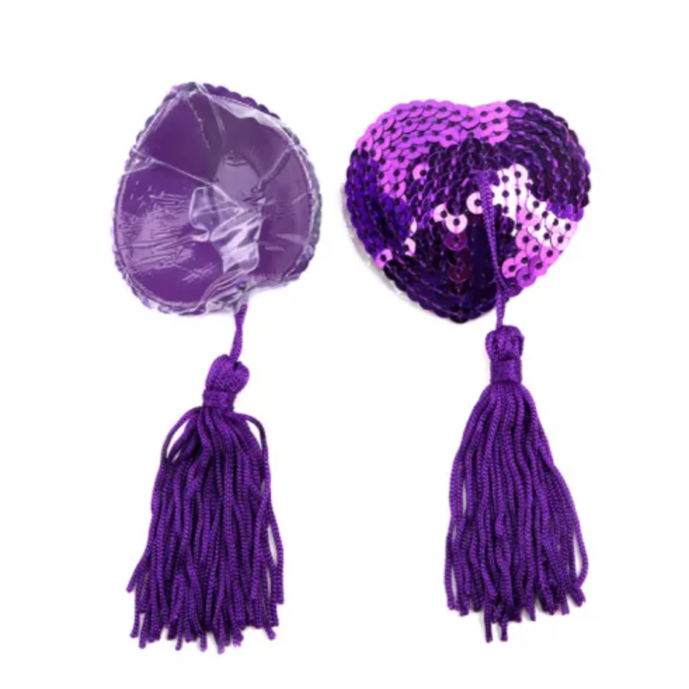 Наклейки для сосків з паєтками та пензликами, фіолетові